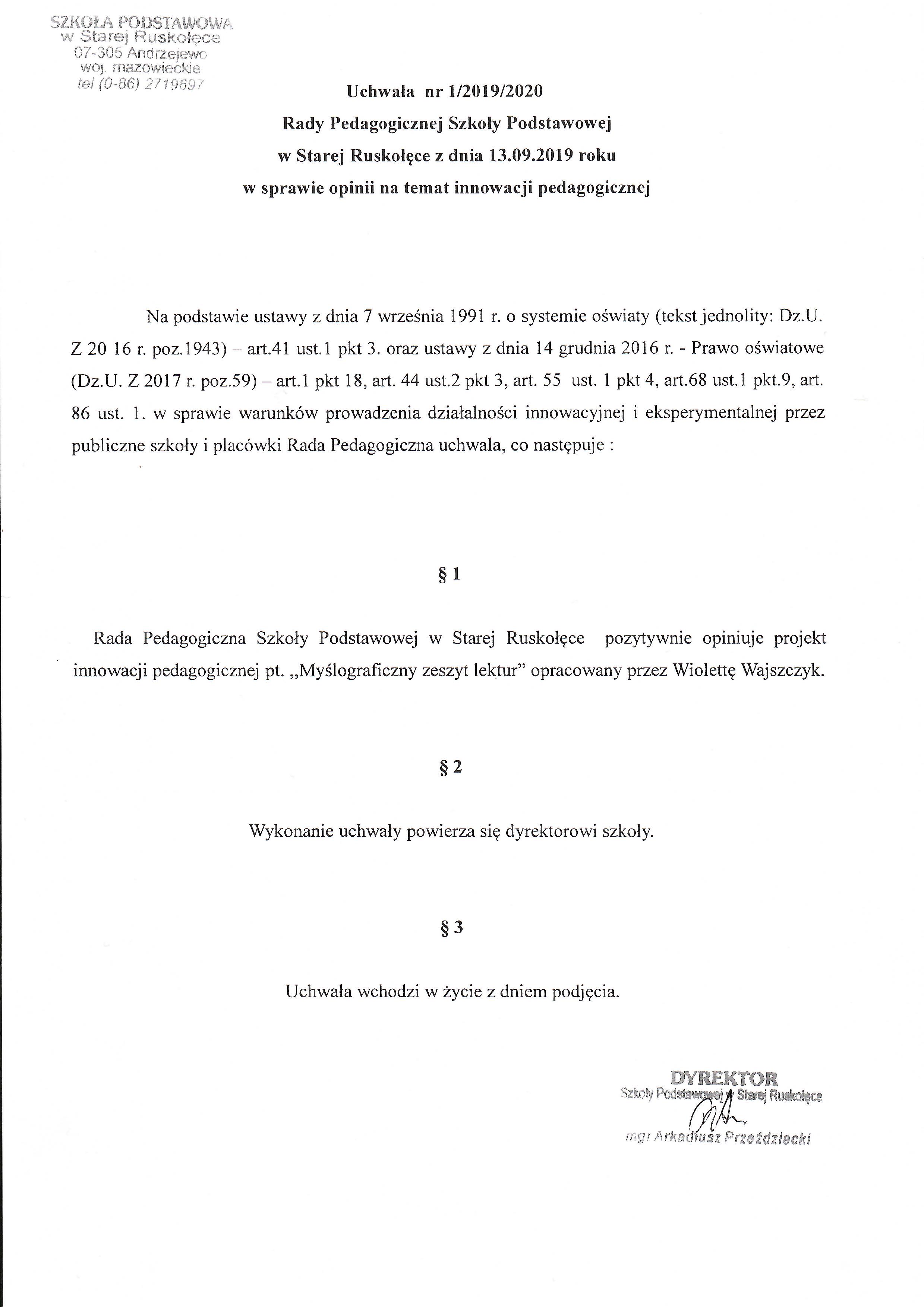 Uchwała Nr 1/2019/2020